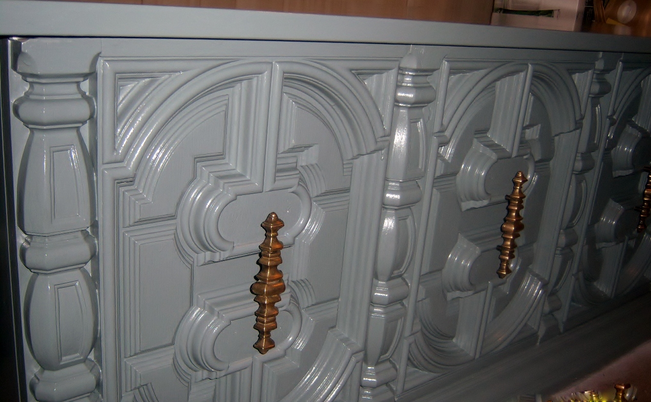 This little buffet came from a thrift store I frequent near my job. It wasn’t very pretty with it’s horrible laminate top and extremely dirty hardware. But it’s looks weren’t what lured me – the massive amount of storage it could provide did.